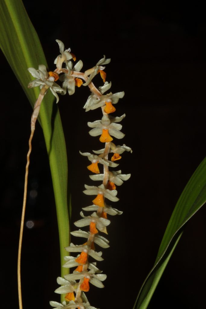 Als es in Bad Salzuflen noch die Ausstellung gab, habe ich bei dem leider nicht mehr lebenden Koos Wubben ein Dendrochilum cobbianum gekauft. Es hat seitdem, also seit ungefähr 15 Jahren, regelmäßig geblüht. Die Pflanze wurde 1888 von Reichenbach für die Philippinen beschrieben und wächst in voller Sonne auch als Lithophyt. Bei mir im Topf mit Rinde, kann auch gedüngt werden. Die Pflanze hat heute ihre Heimat bei Coelogyne. Die Gründe sind an anderer Stelle beschrieben. Unter anderem durch Schuiteman im Orchideenjournal. Wer sich dafür interessiert, kann sich bei mir melden.